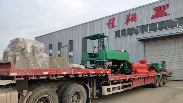 年產(chǎn)1萬(wàn)噸的豬糞有機(jī)肥生產(chǎn)線發(fā)往海南某縣,主要的肥料加工設(shè)備有:輪式翻堆機(jī)、有機(jī)肥濕法攪齒造粒機(jī)、臥式攪拌機(jī)、半濕物料粉碎機(jī)、滾筒烘干機(jī)、冷卻機(jī)、鏟車喂料機(jī)、自動(dòng)包裝秤等等。