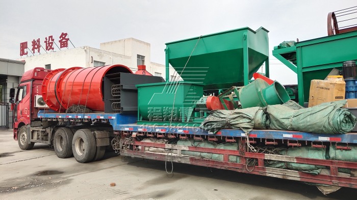 肥料生產(chǎn)設(shè)備廠家程翔重工本次發(fā)貨為年產(chǎn)5萬(wàn)噸的豬糞有機(jī)肥加工成套設(shè)備,主要的有機(jī)肥生產(chǎn)設(shè)備有:液壓槽式翻堆機(jī)、鏟車喂料機(jī)、半濕物料粉碎機(jī)、臥式攪拌機(jī)、平模擠壓造粒機(jī)、滾筒烘干機(jī)、冷卻機(jī)、滾筒篩分機(jī)、自動(dòng)包裝秤等等。由于肥料加工設(shè)備較多,因此分為兩車裝貨。