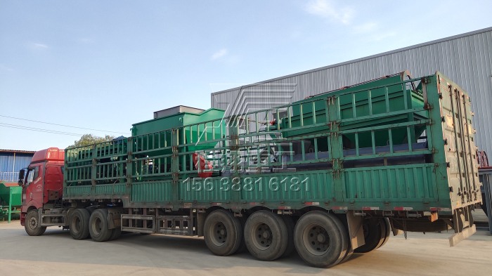 牛糞有機肥加工成套設(shè)備裝車完成,正在廠區(qū)門口進行最后的清單檢查。
