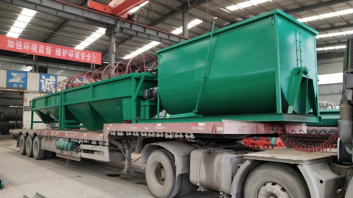 查看 > 01 2021/03本次發(fā)貨的豬糞有機(jī)肥生產(chǎn)線主要設(shè)備有:鏟車喂料、臥式攪拌機(jī)、有機(jī)肥濕法造粒機(jī)、滾筒篩分機(jī)以及烘干設(shè)備。BB肥攪拌機(jī)作為拋圓設(shè)備使用