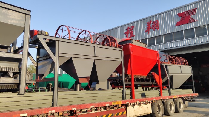 查看 > 20 2020/11由于該豬糞秸稈有機(jī)肥料生產(chǎn)線產(chǎn)量較大,因此分為多車裝置運(yùn)輸。主要的豬糞加工設(shè)備有:大型秸稈粉碎機(jī)、履帶式翻堆機(jī)、臥式攪拌機(jī)、新型三合一造粒機(jī)、不同型號的滾筒篩分機(jī)以及多個型號的烘干冷卻設(shè)備。滾筒烘干設(shè)備風(fēng)頭以及風(fēng)機(jī)安置熱風(fēng)爐以及冷卻設(shè)備多個烘干冷卻設(shè)備履帶式翻堆機(jī)以及大型秸稈粉碎機(jī)二次烘干設(shè)備滾筒篩分機(jī)以及鏟車喂料倉本次豬糞秸稈有機(jī)肥料生產(chǎn)線工藝設(shè)計流程為:利用大型秸稈粉碎機(jī)將稻草秸稈等粉碎均勻,