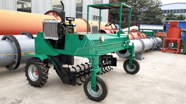 4、升溫翻堆:當溫度計顯示溫度大于45℃,并處于不斷升溫狀態(tài),借助牛糞有機肥翻堆機開始翻堆作業(yè)。此時翻堆的主要目的是為了將表面的有益發(fā)酵菌翻拌到內(nèi)部,同時將氧氣帶入內(nèi)部避免缺氧影響正常的腐熟進程。2~3天翻堆一次,具體的翻堆次數(shù)還要根據(jù)料堆內(nèi)溫度的變化,堆肥溫度盡量控制在50℃~60℃為宜,此時有益發(fā)酵菌活性最大,發(fā)酵速率也快。