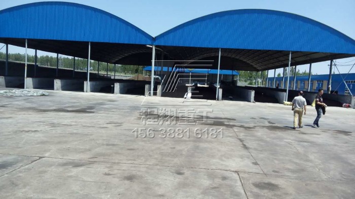 考慮到牛糞的物料特性,為節(jié)約投資,南方地區(qū)也可以用遮雨棚代替太陽能堆肥車間。