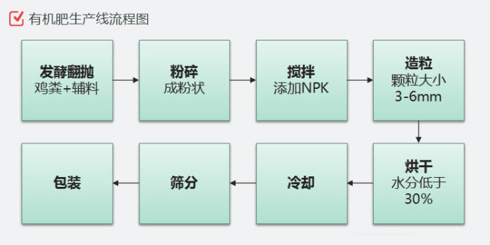 查看 > 13 2020/10本次發(fā)貨的設(shè)備是程翔重工是為江西某客戶定制的,簡(jiǎn)單的年產(chǎn)1萬噸雞糞有機(jī)肥生產(chǎn)線,主要設(shè)備有:鏈?zhǔn)椒鬯闄C(jī)、滾筒篩分機(jī)、濕法攪齒造粒機(jī)、鏟車喂料倉以及自動(dòng)包裝秤。改雞糞生產(chǎn)線的工作流程為:發(fā)酵——粉碎——攪拌——造粒——篩分——包裝運(yùn)輸1.發(fā)酵是第一步,畜禽糞便含有大量病蟲卵,需要進(jìn)