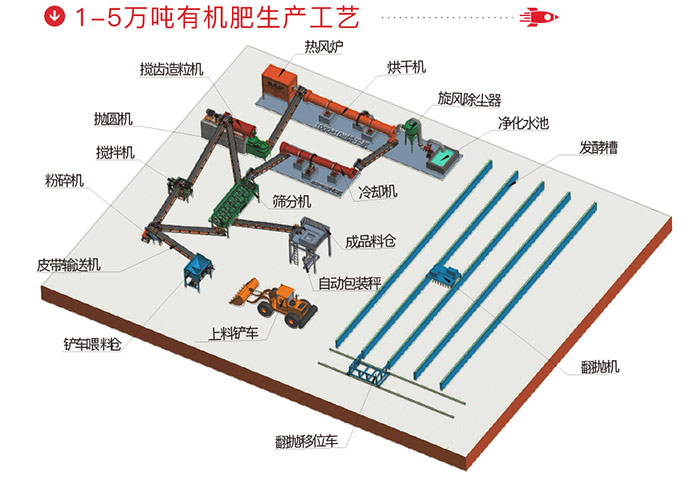 年產(chǎn)1~5萬噸的標準有機肥生產(chǎn)線配套設備現(xiàn)場規(guī)劃圖
