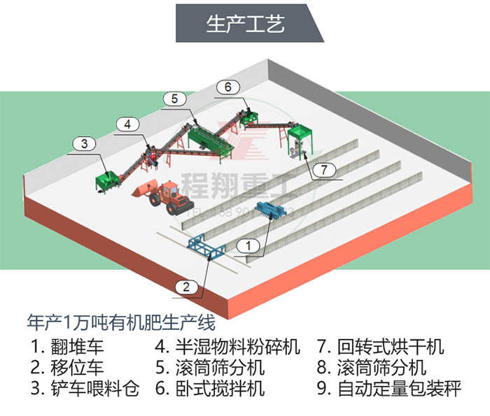 查看 > 13 2020/10本次發(fā)貨的設(shè)備是程翔重工是為江西某客戶定制的,簡(jiǎn)單的年產(chǎn)1萬(wàn)噸雞糞有機(jī)肥生產(chǎn)線,主要設(shè)備有:鏈?zhǔn)椒鬯闄C(jī)、滾筒篩分機(jī)、濕法攪齒造粒機(jī)、鏟車喂料倉(cāng)以及自動(dòng)包裝秤。改雞糞生產(chǎn)線的工作流程為:發(fā)酵——粉碎——攪拌——造粒——篩分——包裝運(yùn)輸1.發(fā)酵是第一步,畜禽糞便含有大量病蟲(chóng)卵,需要進(jìn)