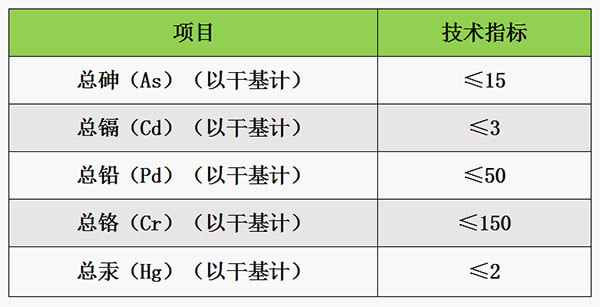 生物有機(jī)肥產(chǎn)品中5種重金屬限量技術(shù)要求。單位:mg/kg