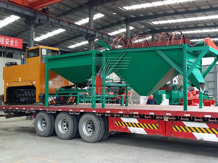查看 > 20 2020/11由于該豬糞秸稈有機(jī)肥料生產(chǎn)線產(chǎn)量較大,因此分為多車裝置運(yùn)輸。主要的豬糞加工設(shè)備有:大型秸稈粉碎機(jī)、履帶式翻堆機(jī)、臥式攪拌機(jī)、新型三合一造粒機(jī)、不同型號的滾筒篩分機(jī)以及多個型號的烘干冷卻設(shè)備。滾筒烘干設(shè)備風(fēng)頭以及風(fēng)機(jī)安置熱風(fēng)爐以及冷卻設(shè)備多個烘干冷卻設(shè)備履帶式翻堆機(jī)以及大型秸稈粉碎機(jī)二次烘干設(shè)備滾筒篩分機(jī)以及鏟車喂料倉本次豬糞秸稈有機(jī)肥料生產(chǎn)線工藝設(shè)計(jì)流程為:利用大型秸稈粉碎機(jī)將稻草秸稈等粉碎均勻,