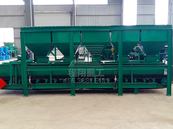 本次牛糞全套有機(jī)肥料設(shè)備生產(chǎn)工藝采用槽式好氧發(fā)酵,利用翻堆槽發(fā)酵既干凈又能最大化的利用有限的場(chǎng)地,增加糞便處理量。由于客戶對(duì)于顆粒有機(jī)質(zhì)含量以及NPK有特殊要求,因此我們?yōu)榭蛻魧?zhuān)門(mén)定制了一臺(tái)三倉(cāng)的靜態(tài)配料系統(tǒng)。